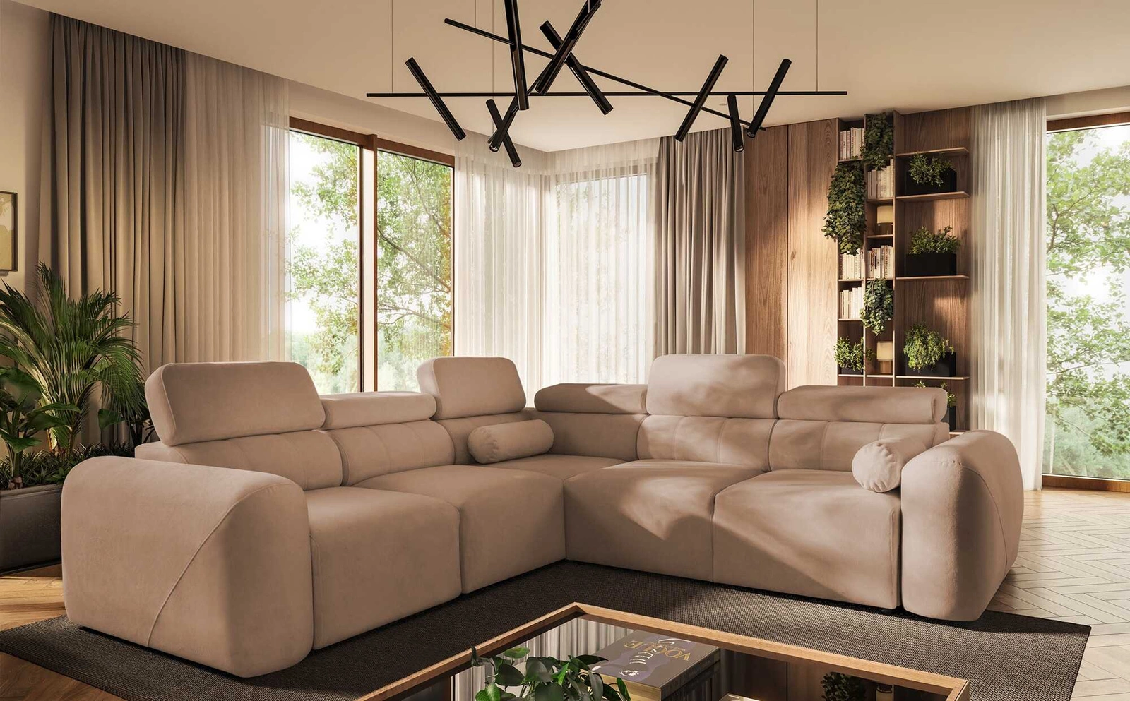 Die Art und Weise, wie der Eckschrank aufgeklappt wird, ist praktisch und einfach zu benutzen puma-Automat (Ostlift), das sich durch eine lange Lebensdauer auszeichnet. Flächendeckende Verteilung schlafen ist sehr einfach und erfordert keinen großen Kraftaufwand. Das Eckteil garantiert eine komfortable und störungsfreie Nutzung und eine langjährige Haltbarkeit des gesamten Möbelstücks. Das Ecksofa mit Schlaffunktion eignet sich dank seiner Abmessungen und seiner breiten Funktionalität ideal als Ecksofa für das Wohnzimmer oder als klappbares Ecksofa für das Gästezimmer. Ein Ecksofa mit Schlaffunktion ist auch eine gute Alternative zu einem Bett in einem Raum jugend. Die Cantare-Wohnzimmerecken passen perfekt in jede Einrichtung in Ihrem Lieblingsstil.