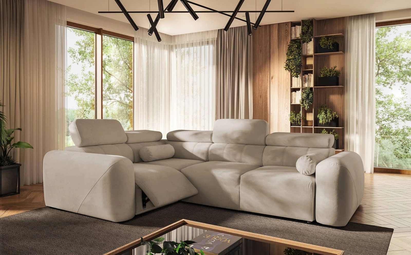 Ecksofa mit Schlaffunktion Cantare II Lux beige links bequemes Ecksofa für Wohnzimmer mit Lift Fußstütze weicher Stoff