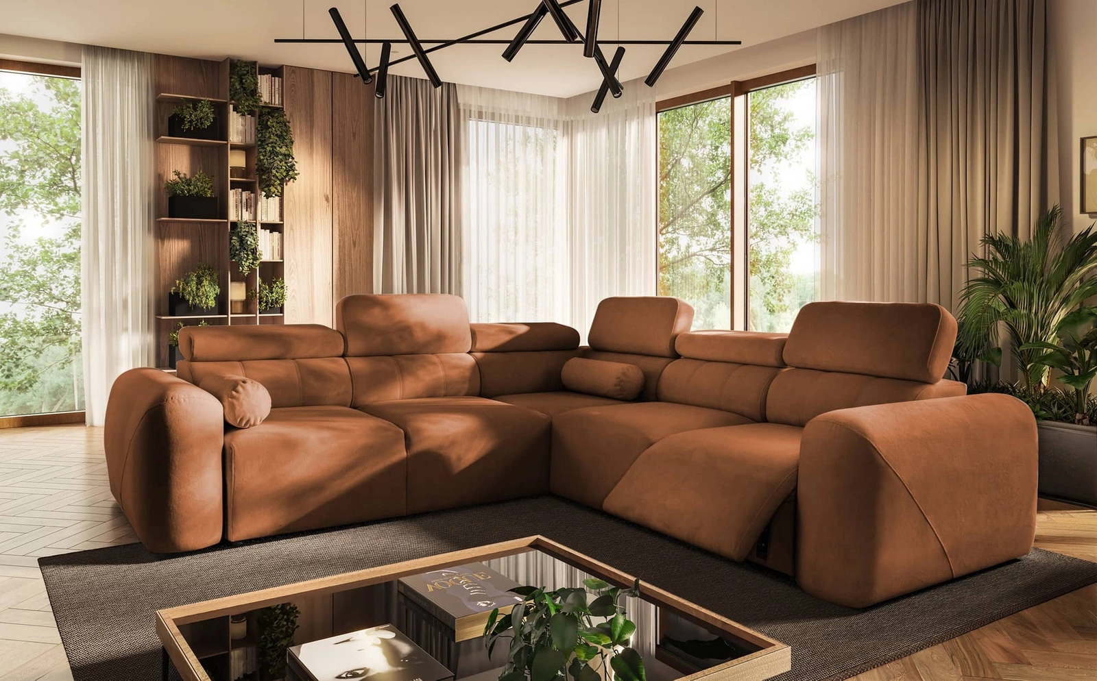 Cantare III Lux Ecksofa in ziegelrot ist ein äußerst funktionelles Möbelstück mit stilvollem Finish.
