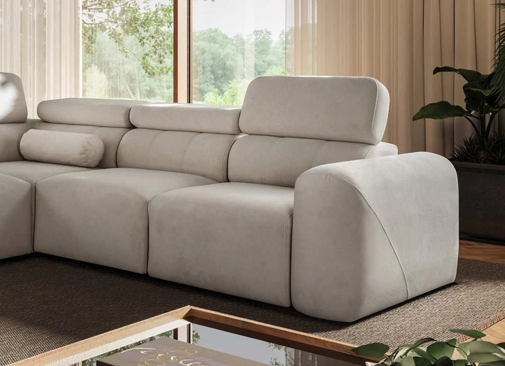 Eckeinheit mit Schlaffunktion Cantare III Lux verbindet Funktionalität mit einer äußerst stilvollen und eleganten Form. Der gesamte Körper war bedeckt mit stoff plüsch-Typ Torra 41023. Eckeinheit zeichnet sich aus durch interessantes Design, hohe Verarbeitungsqualität und die Hinzufügung von zierkissen, die noch mehr Komfort und Bequemlichkeit für diese hochmoderne Eckeinheit gewährleisten. Subtil, ziernaht unterstreichen den eleganten Charakter der Möbel und machen sie zu einer stilvollen Ergänzung für jeden Raum. Ein weiterer Vorteil der Ecke ist elektrisch hochgestellte Fußstütze, die einen komfortablen und erholsamen Aufenthalt gewährleisten. Dies ist eine hervorragende Lösung, die es Ihnen ermöglicht, den Raum optimal zu nutzen, ohne nach zusätzlichen Möbeln suchen zu müssen. Modernes eckdesign wird den höchsten Ansprüchen an Funktionalität und Design gerecht.