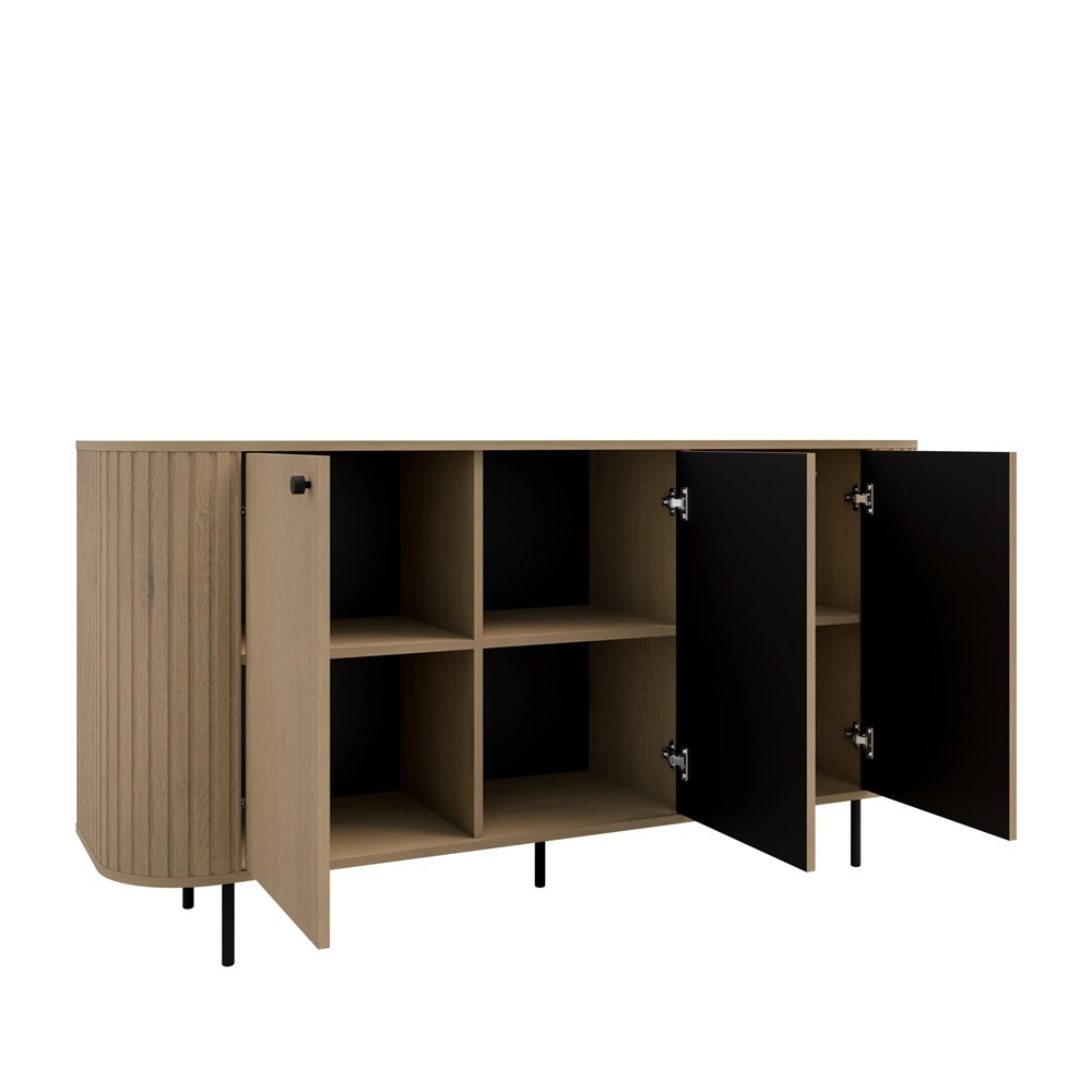 Die Kommode Ovalio 165 cm in Eiche cremone ist ein modernes Möbelstück, das durch seine Form und Ästhetik überrascht.