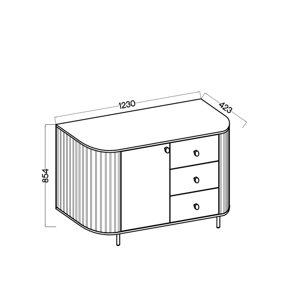 Die Kommode Ovalio 123 cm aus Eiche Cremona ist ein modernes Möbelstück, das durch seine Form und Ästhetik überrascht.