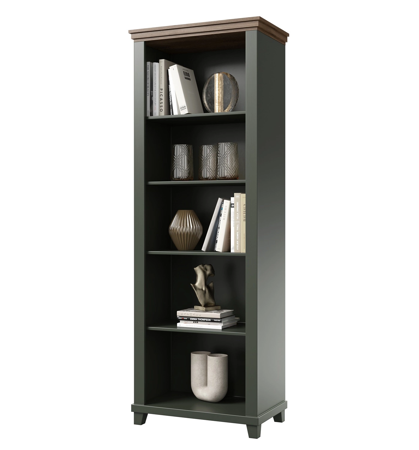 Das Bücherregal Evora in Flaschengrün/Eiche Lefkas ist ein Rezept für ein stilvolles und funktionelles Möbelstück für das Büro oder Arbeitszimmer!