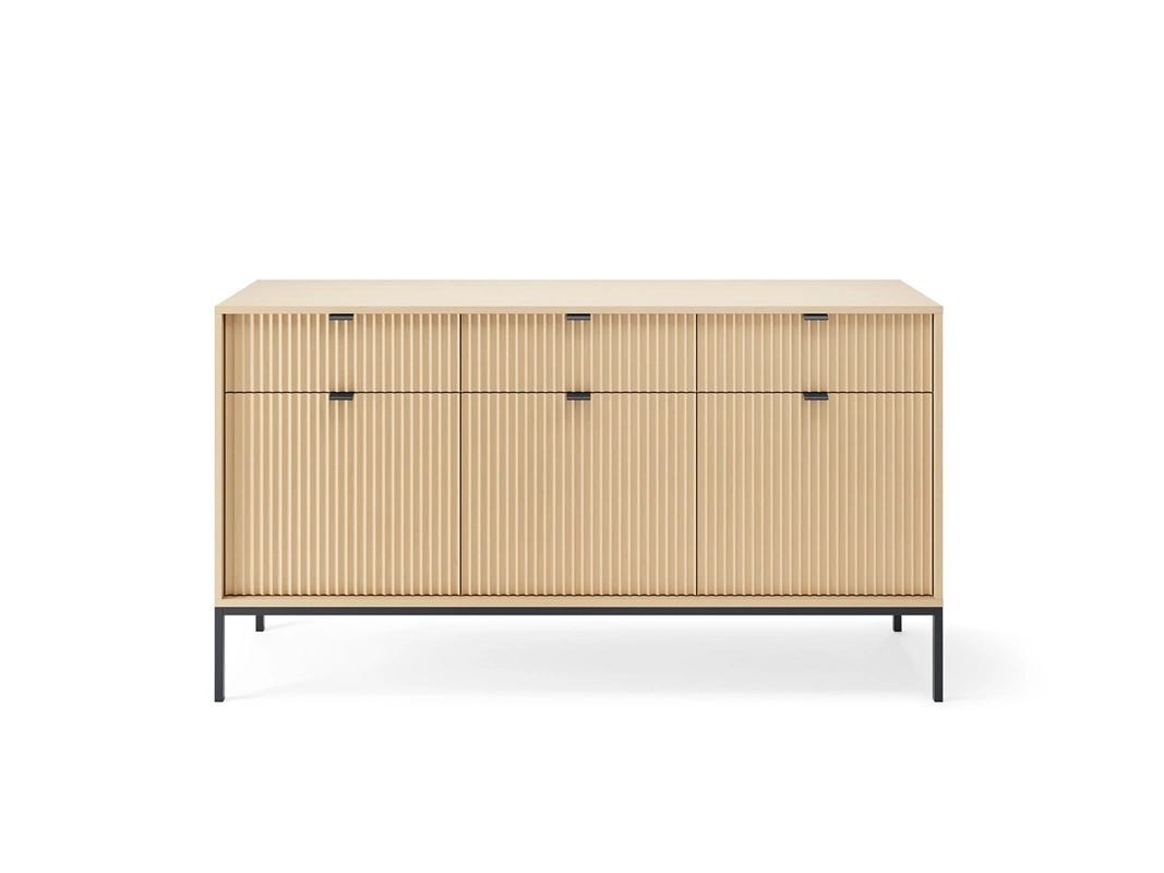 Kommode mit Schubladen Lovro 154 cm Eiche Vicenza Designerkommode mit dekorativen geriffelten Fronten perfekt für das Wohnzimmer