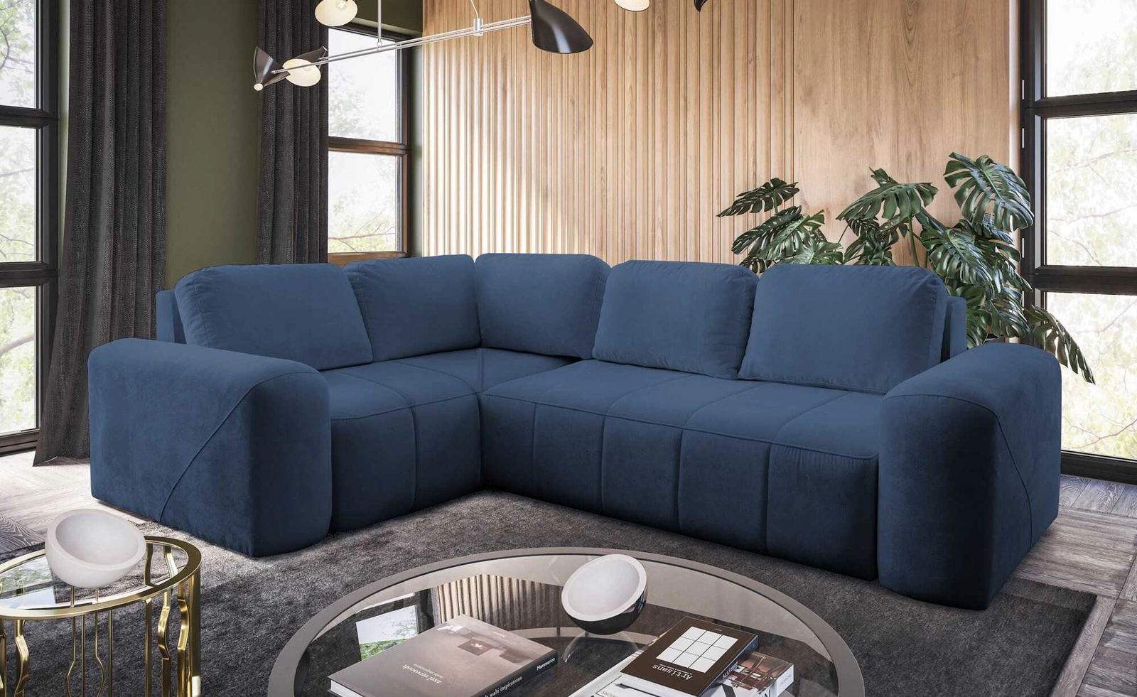 Ecksofa mit Schlaffunktion Bovec II blau links Komfort-Ecksofa mit einem stilvollen Charakter-Bettcontainer