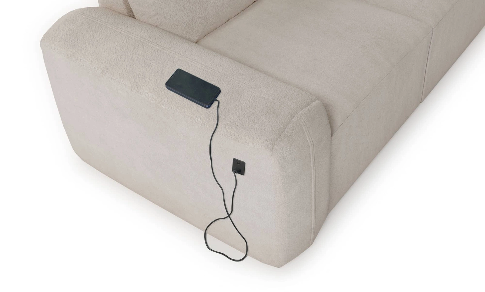 Die Extras dieses Möbelstücks, die alle Nutzer schätzen werden, sind die Schlaffunktion, der Bettzeugbehälter und die USB-Ladebuchse an der Seite des Sofas.