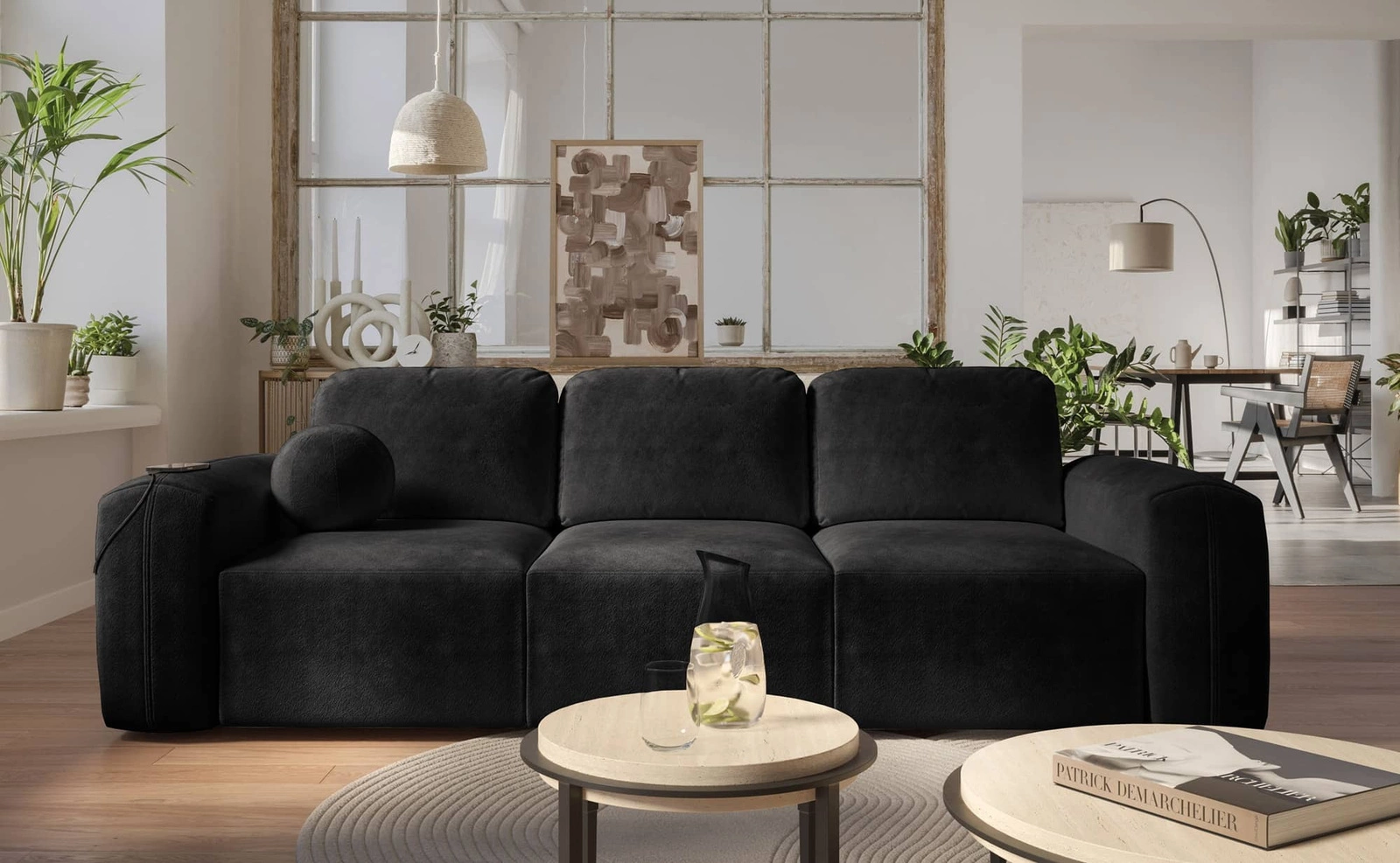 Sofa mit Schlaffunktion Arbon schwarz komfortables und stilvolles Sofa für das Wohnzimmer weicher Plüschstoff verleiht einzigartigen Charakter