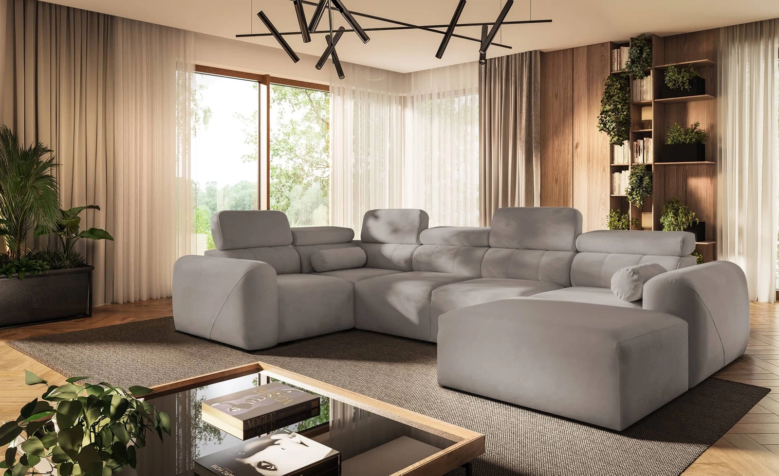 Ecksofa Cantare IV in grauer Esche ist ein äußerst funktionelles Möbelstück mit stilvollem Finish.