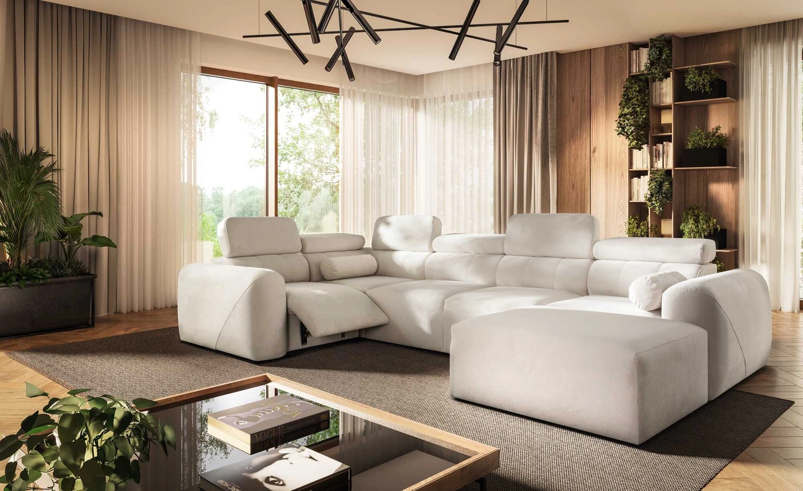 - Das Ecksofa Cantare IV Lux zeichnet sich durch ein modernes und stilvolles Design aus. Der weich strukturierte, flauschige Stoff und die zusätzliche hochklappbare Fußstütze sorgen für ein bequemes und entspanntes Liegen. Das einfach zu bedienende Entfaltu