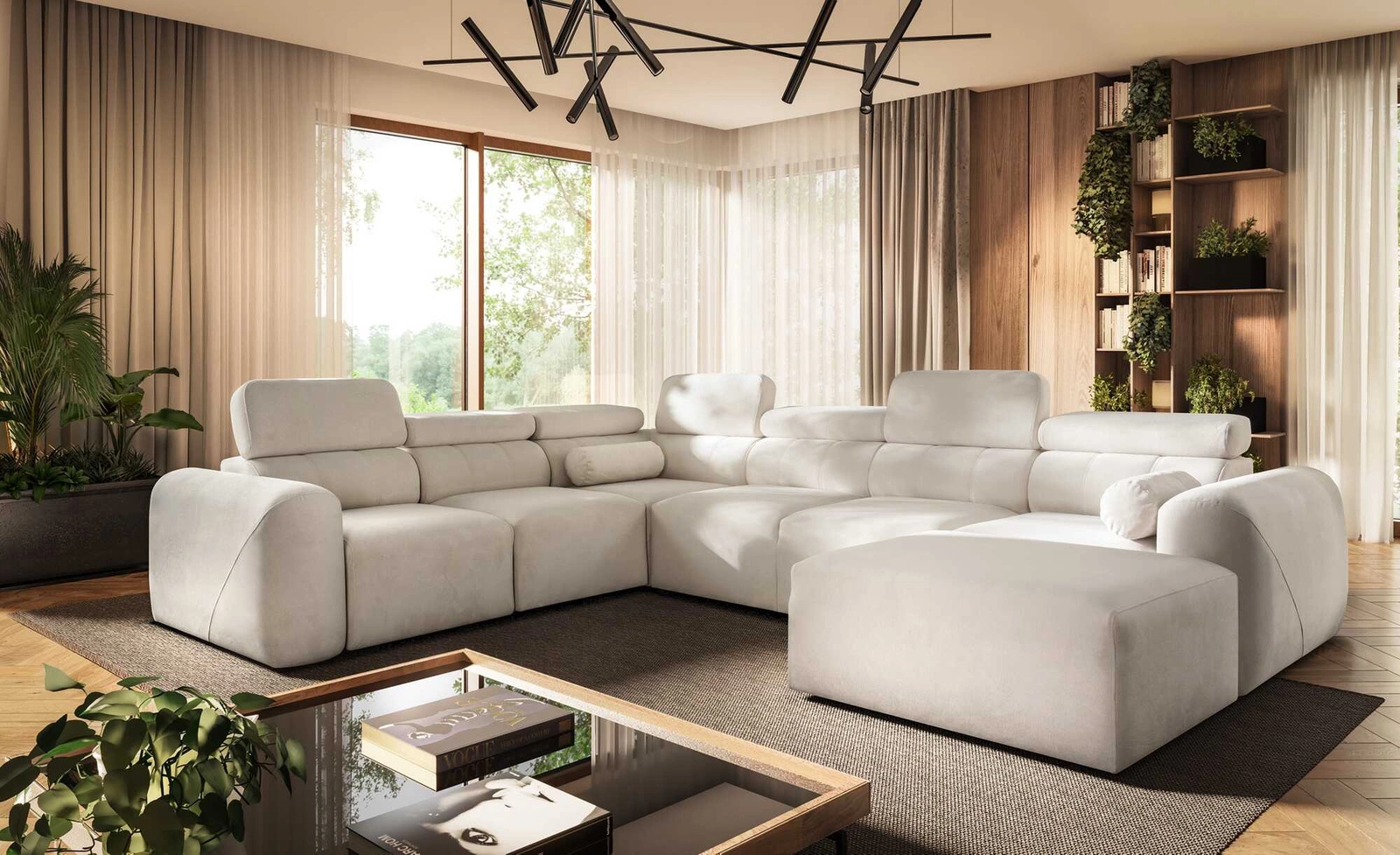 Ecksofa mit Schlaffunktion Cantare VIII Elfenbein rechts geschmackvolles Ecksofa mit verstellbaren Kopfstützen Bettzeugcontainer