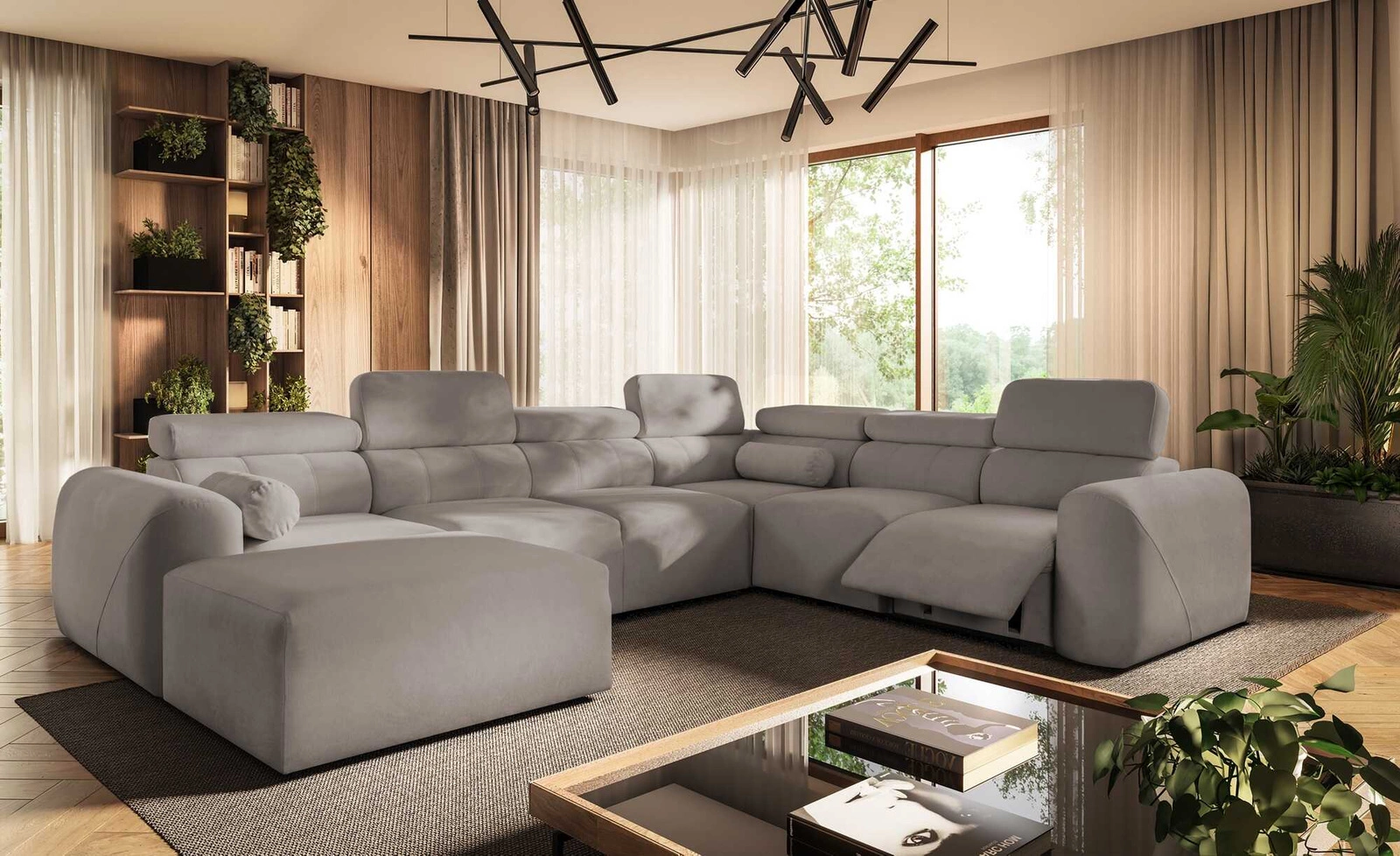 Cantare VIII Lux Ecksofa in grauer Esche ist ein äußerst funktionelles Möbelstück mit stilvollem Finish.