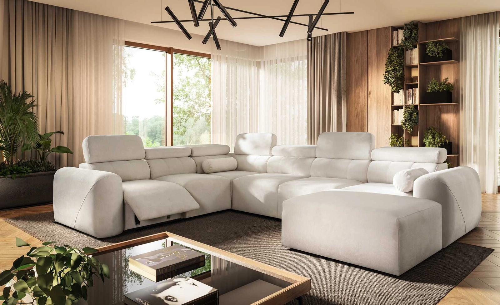 Cantare VIII Lux Ecksofa in Elfenbein ist ein hochfunktionales Möbelstück mit stilvollem Finish.