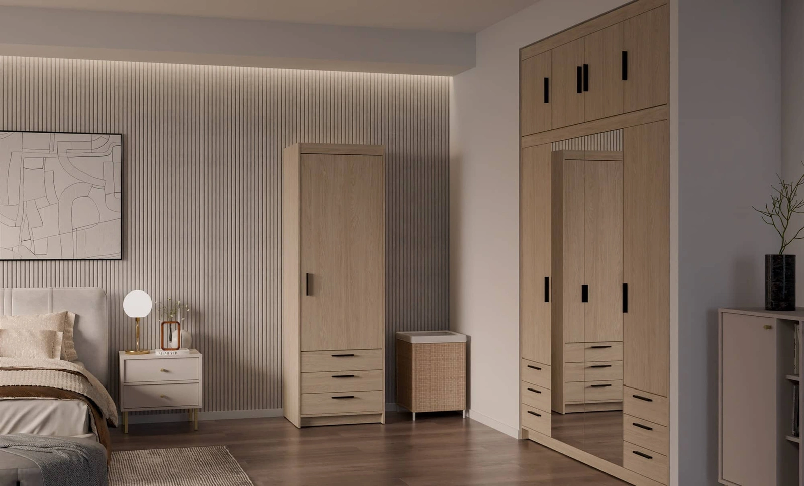 Der Kleiderschrank Rene 60 cm aus geölter Eiche ist ein Rezept für eine moderne und funktionelle Einrichtung Ihres Hauses!