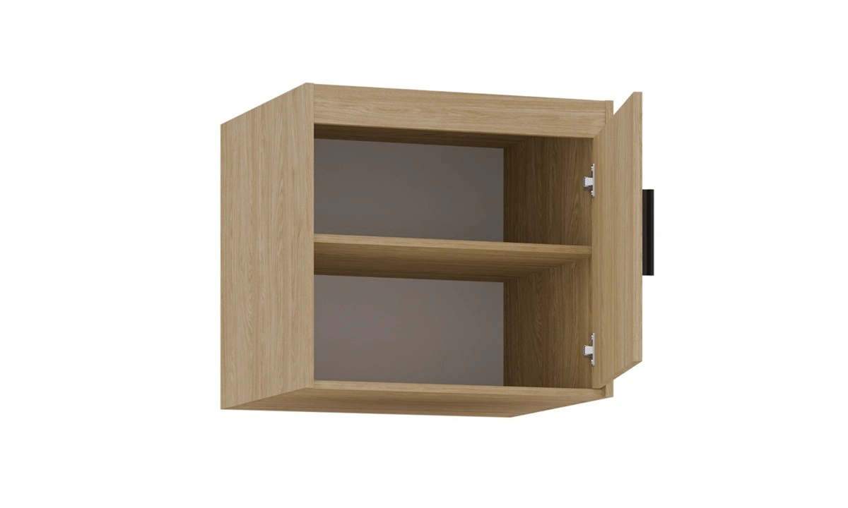 Der Schrankauszug hat flügeltüren mit einer matten Oberfläche matt. Die Möbel bestehen aus 1 Tür. Die Platte ist aus hochwertigem laminierter Platte, die gekennzeichnet ist durch hohe widerstand gegen äußere Einflüsse wie Prellungen, Stöße und unglückliche Kratzer. Die Front der Schrankerweiterung wird ergänzt durch schwarzen Griff, die die Eleganz der Möbel unterstreicht. Die Abmessungen der Möbel sind optimal. Breite 60 cm, höhe 55 cm und Tiefe 53 cm.