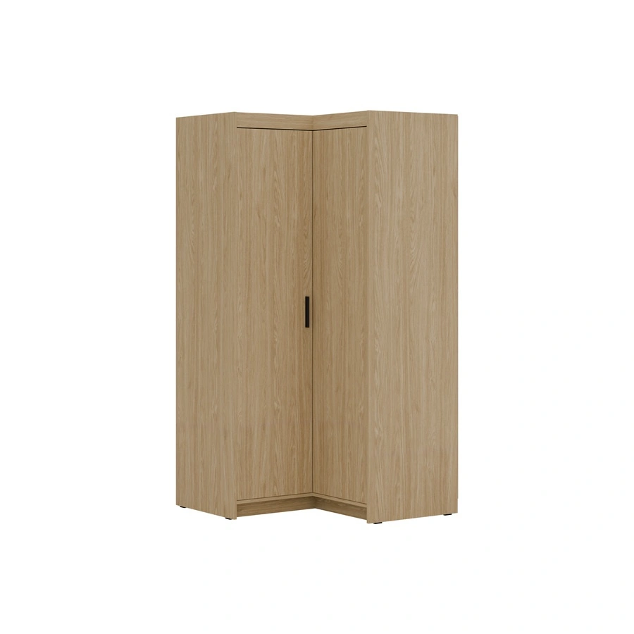 Der Schrank besteht aus 2 Flügeltüren mit einer matten Oberfläche. Die Eckschränke der Kollektion Rene garantieren komfortable i problemlos nutzung und haltbarkeit des gesamten Möbelstücks für viele Jahre der Nutzung. Kombination aus aus Natureiche mit schwarzen Griffen macht den Schrank erfolgreich als Schlafzimmerschrank, als Dielenschrank oder als Kinderzimmergarderobe. Die modularen Schränke von Rene sind auch eine großartige Ergänzung für ein Babyzimmer. Er eignet sich auch perfekt als Garderobe für den Flur.