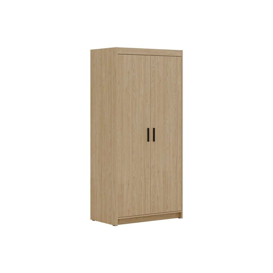 Der Schrank besteht aus 2 Türen. Die Garderobe garantiert bequem und störungsfrei nutzung und Haltbarkeit des gesamten Möbelstücks für viele Jahre der Nutzung. Kombination aus aus Natureiche mit schwarzen Griffen macht den Schrank erfolgreich als Schlafzimmerschrank, als Dielenschrank oder als Kinderzimmergarderobe. Die modularen Kleiderschränke von Rene sind auch eine gute Wahl für ein Babyzimmer. Er eignet sich auch perfekt als Garderobe für den Flur.