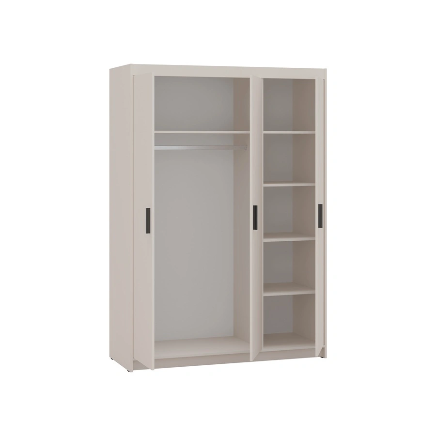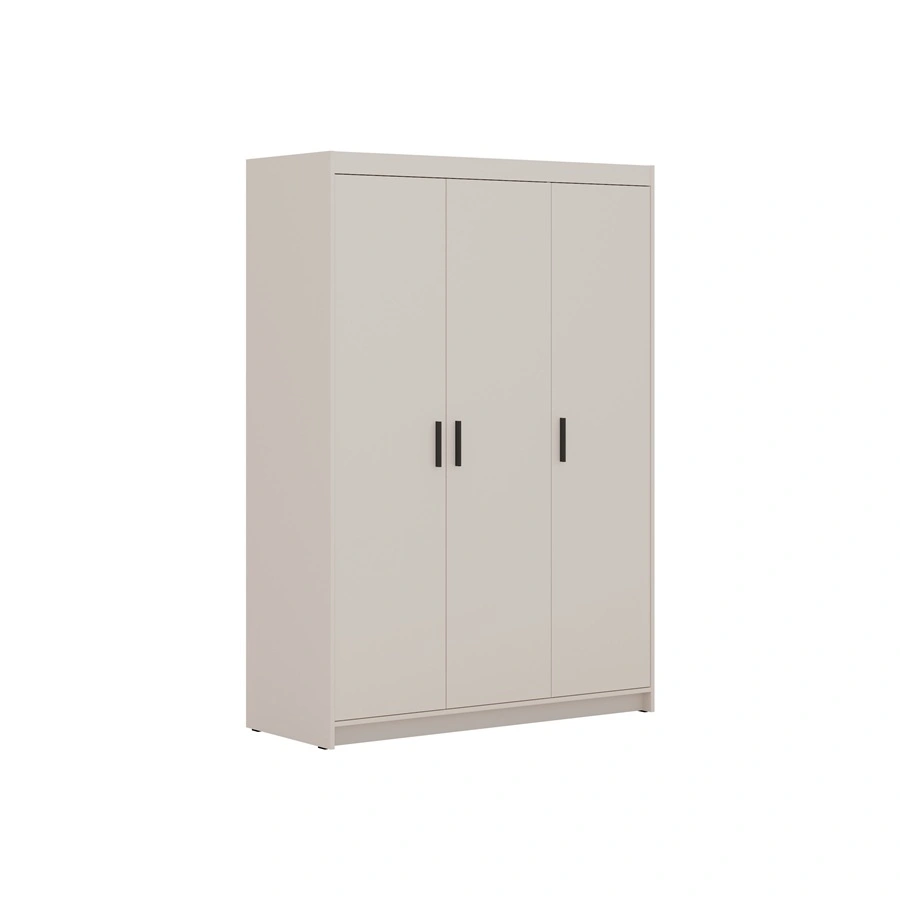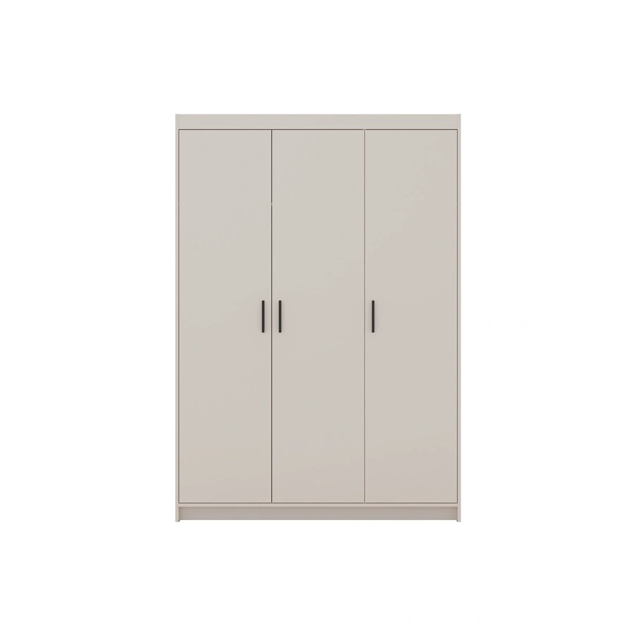 Der Schrank besteht aus 3 Türen. Die Garderobe garantiert bequem und störungsfrei nutzung und haltbarkeit des gesamten Möbelstücks für viele Jahre der Nutzung. Kombination aus sandbeige mit schwarzen Griffen macht den Schrank erfolgreich als Schlafzimmerschrank, als Dielenschrank oder als Kinderzimmergarderobe. Die modularen Kleiderschränke von Rene sind auch eine gute Wahl für ein Babyzimmer. Er eignet sich auch perfekt als Garderobe für den Flur.