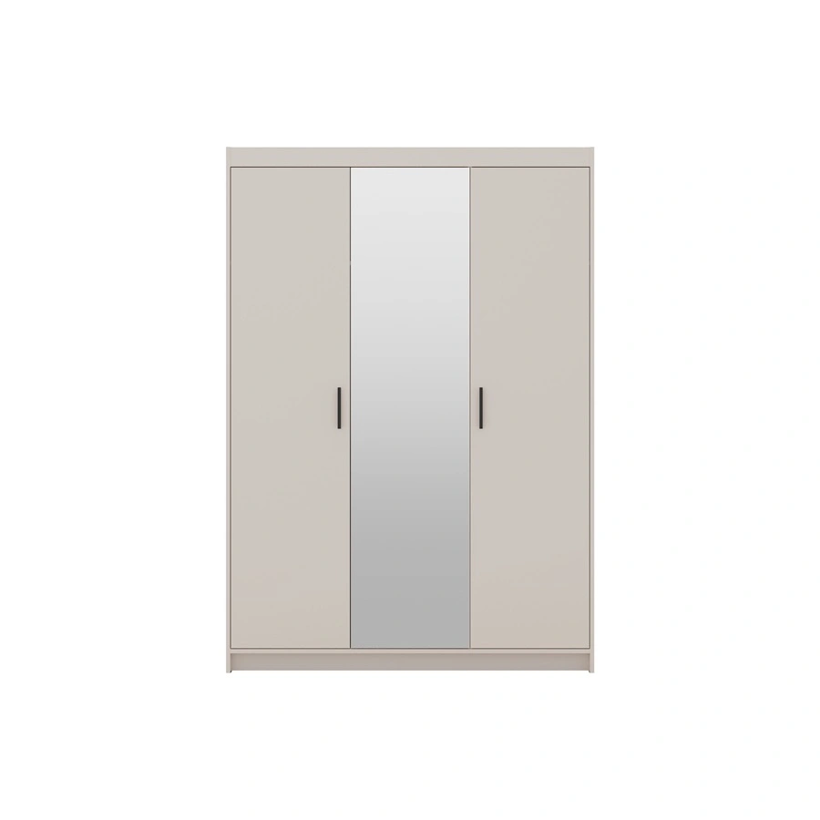 Der Schrank besteht aus 3 Türen. Die Garderobe garantiert bequem und störungsfrei nutzung und haltbarkeit des gesamten Möbelstücks für viele Jahre der Nutzung. Kombination aus sandbeige mit schwarzen Griffen macht den Schrank erfolgreich als Schlafzimmerschrank, als Dielenschrank oder als Kinderzimmergarderobe. Die verspiegelten Kleiderschränke von Rene sind auch eine gute Wahl für ein Babyzimmer. Er eignet sich auch perfekt als Garderobe für den Flur.