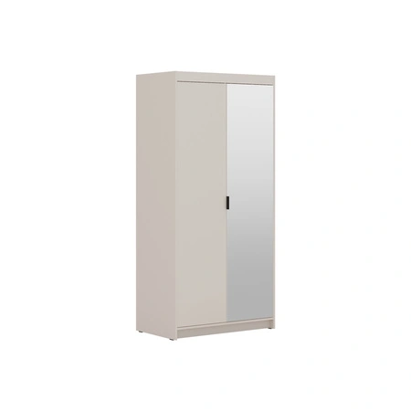 Der Schrank besteht aus 2 Flügeltüren. Die Garderobe garantiert bequem i problemlos nutzung und haltbarkeit des gesamten Möbelstücks für viele Jahre der Nutzung. Kombination aus sandbeige mit schwarzen Griffen macht den Schrank erfolgreich als Schlafzimmerschrank, als Dielenschrank oder als Kinderzimmergarderobe. Die verspiegelten Kleiderschränke von Rene sind auch eine gute Wahl für ein Babyzimmer. Er eignet sich auch perfekt als Garderobe für den Flur.