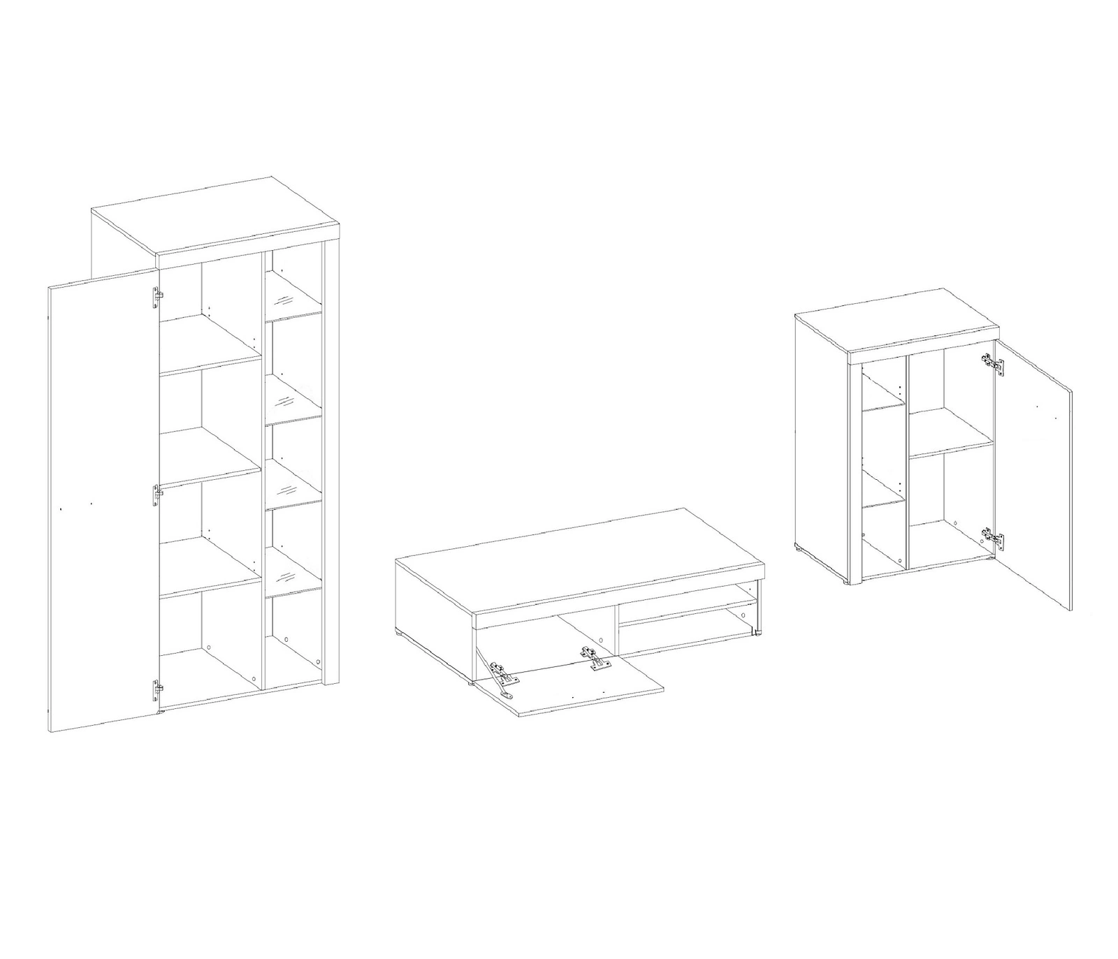 Die Schrankwand Rene ist ein Möbelstück, das sich durch elegantes Design und breite Funktionalität, dank derer die Rene-Möbel sowohl in das Wohnzimmer als auch in den Wohnbereich passen. Modische Farben i sorgfältige Verarbeitung hängeschränke verleihen dem Innenraum ein elegantes und ästhetisch ansprechendes Aussehen. Einfaches Design und fronten mit glatter Oberfläche sind eine originelle und originelle Dekoration. Die Fronten der Wohnzimmermöbel werden ergänzt durch schwarze Griffe, die ein äußerst geschmackvolles Erscheinungsbild bieten. Das Vorhandensein der Schrankwand Rene ermöglicht es, jeden Raum auf interessante Weise zu gestalten.