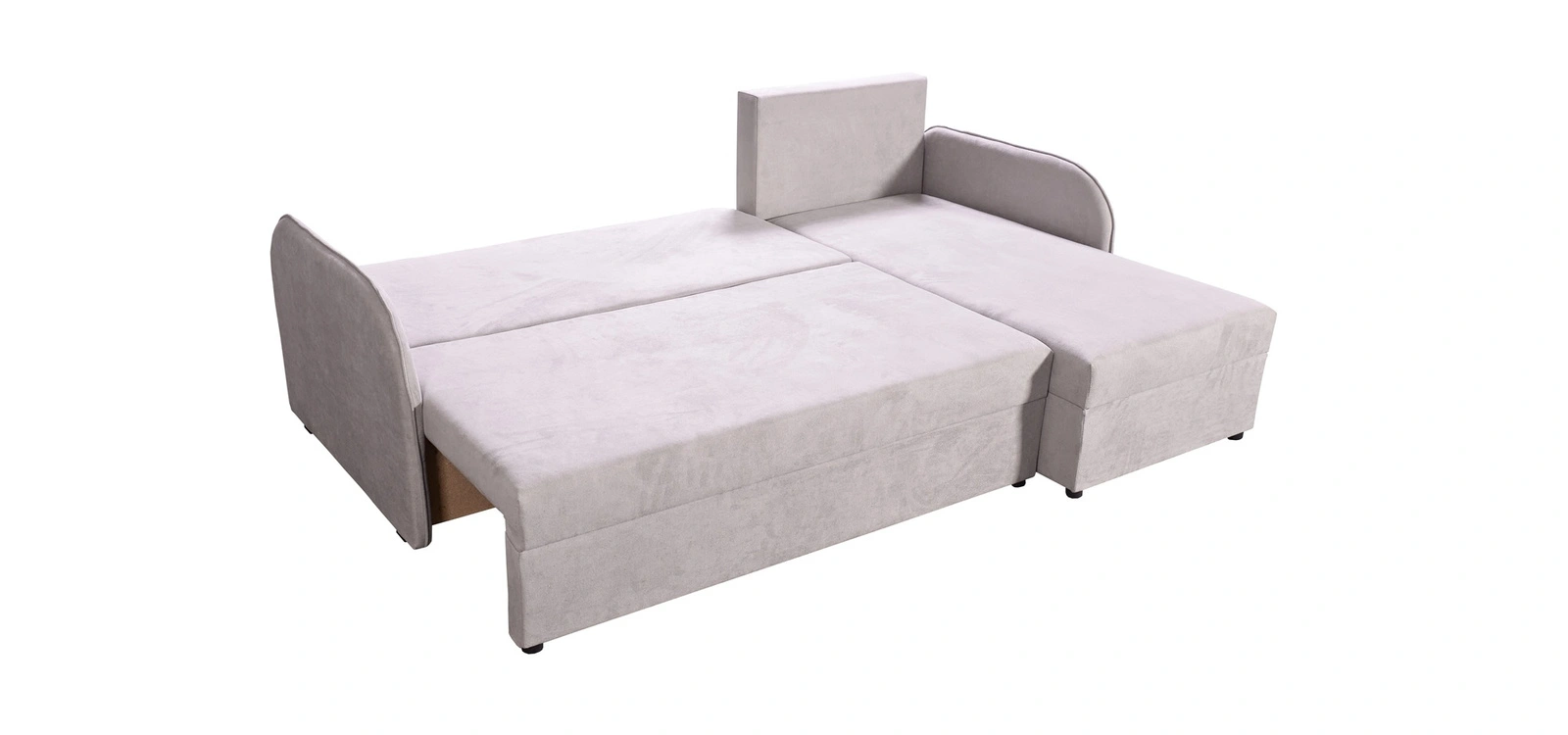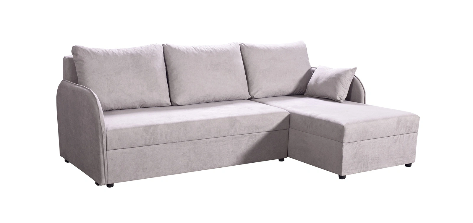 Das King-Gewebe ist sehr robust und langlebig, aber auch extrem angenehm anzufassen ein Material, das leicht sauber zu halten ist. Ein weiterer Vorteil des King-Gewebes ist hohe Abriebfestigkeit. So wird das klappbare Ecksofa Orsa für lange Zeit ästhetisch und elegant aussehen. Das Ecksofa mit täglicher Schlaffunktion ist aus hochwertigen Materialien gefertigt, die gegen äußere Einflüsse wie Möbelbezüge und verschiedene Arten von Stößen resistent sind.