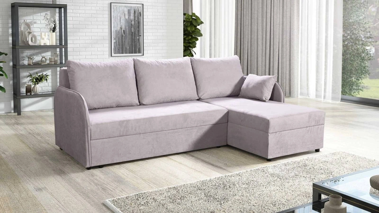 Das Ecksofa mit Schlaffunktion eignet sich dank seiner Abmessungen und seiner breiten Funktionalität ideal als Ecksofa für das Wohnzimmer oder als klappbares Ecksofa für das Gästezimmer. Ein Ecksofa mit Schlaffunktion ist auch eine gute Alternative zu einem Bett im Zimmer der jugendzimmer. Breite der Ecke 210 cm, höhe 83 cm und Tiefe 145 cm. Die Liegefläche der Eckeinheit beträgt 123x200 cm. Die Sitzhöhe des Möbels beträgt 40 cm, und die Höhe der Rückenlehne beträgt 43 cm. Polyurethan-Schaumstoff T28 ist das Material, aus dem der Sitz der Ecke hergestellt ist. Weich rückenlehnen-Kissen gewährleisten einen hohen Komfort bei der täglichen Erholung, den Sie und Ihre Gäste, die auf diesem einzigartigen Ecksofa sitzen, zu schätzen wissen werden.