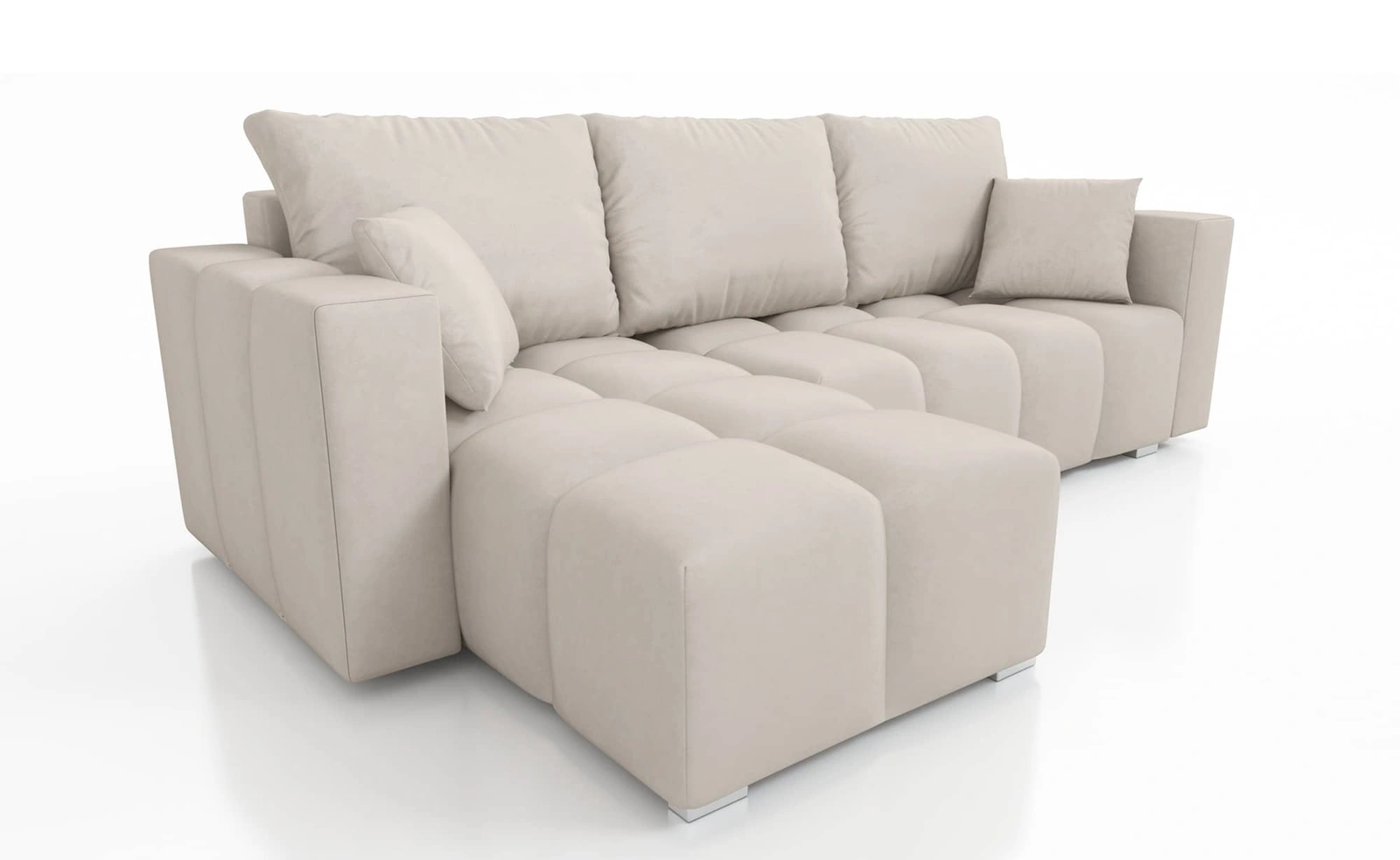 Ecksofa mit Schlaffunktion Linco hellbeige Universal Ecksofa mit modernem Design aus weichem Plüschstoff