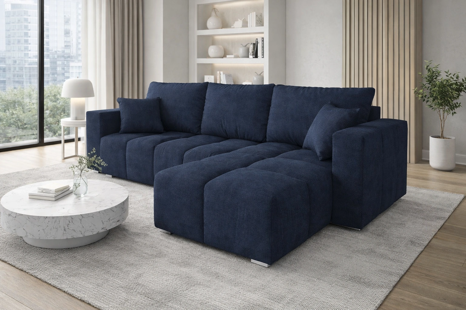 Linco Ecksofa in Marineblau ist ein attraktives Möbelstück, das sich in jedem Raum Ihres Zuhauses gut macht.