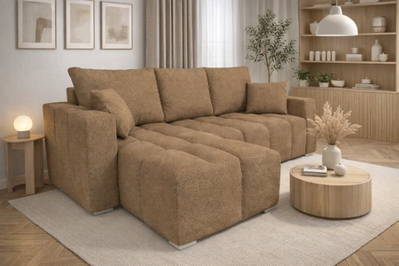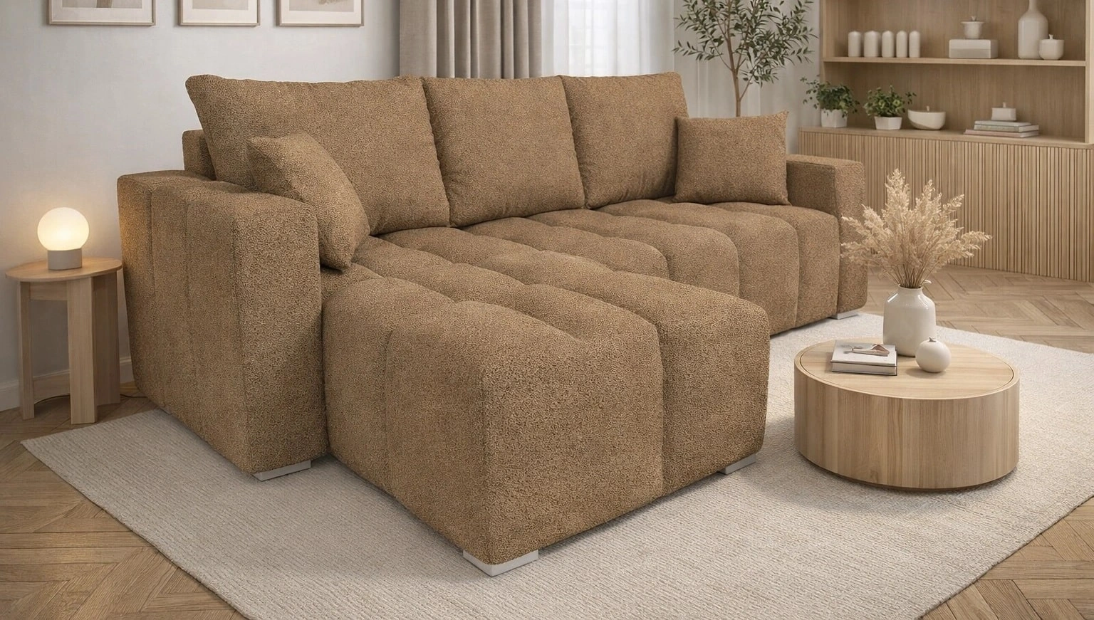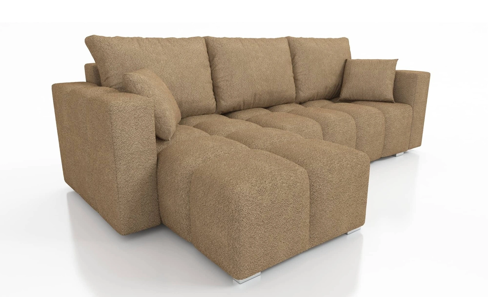 Ecksofa mit Schlaffunktion Linco dunkelbeige Universal Ecksofa für Wohnzimmer mit modernem Design aus Boucle-Stoff