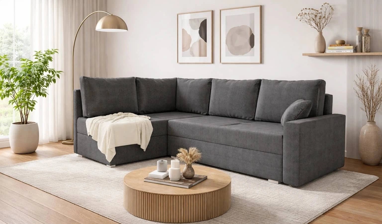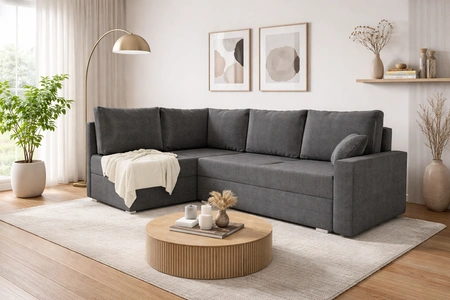 Ecksofa mit Schlaffunktion Nofi dunkelgrau linke Ecke modernes Design schlichtes und stilvolles Design passend zu jeder Einrichtung