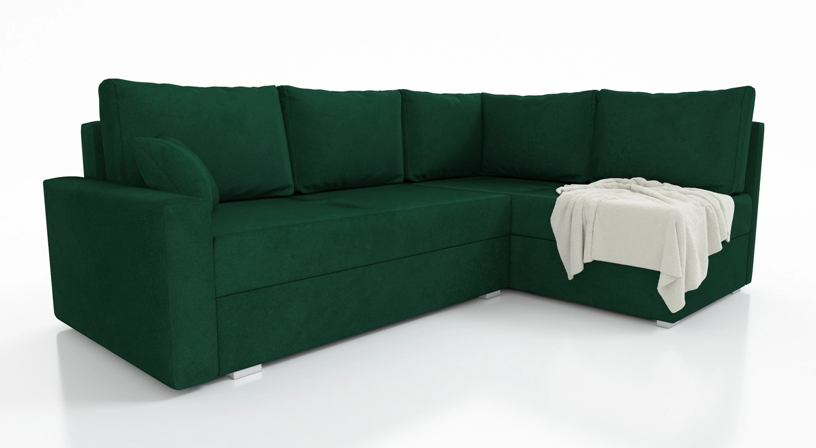 Ecksofa mit Schlaffunktion Nofi Flasche grün rechts Seite modernes Design einfacher und stilvoller Körper, der in jede Inneneinrichtung passt