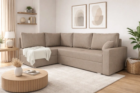Ecksofa mit Schlaffunktion Nofi dunkelbeige links modernes Design ein schlichter und stilvoller Korpus, der in jede Einrichtung passt