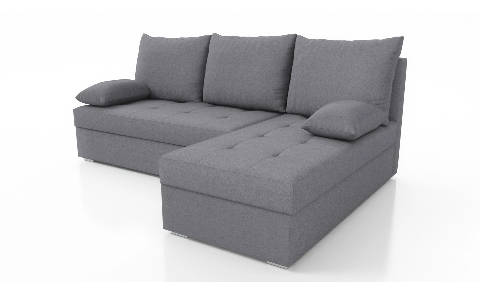Das Ecksofa mit Schlaffunktion eignet sich dank seiner optimalen Maße und seiner breiten Funktionalität perfekt als Ecksofa für ein Wohnzimmer oder als klappbares Ecksofa für ein Jugendzimmer. Breite der Ecke 200 cm, maximale Höhe 85 cm und Tiefe 143 cm. Die Liegefläche der Eckeinheit beträgt 122x199 cm. Die Sitzhöhe des Möbels beträgt 38 cm und die maximale Höhe der Rückenlehne beträgt 45 cm. Polyurethan-Schaumstoff T28 ist das Material, aus dem der Sitz der Ecke hergestellt ist. Rückenlehne mit losen polstern garantiert komfortable Entspannung nach einem langen Tag, die Sie, Ihre Lieben und auch Gäste, die auf diesem einzigartigen Ecksofa sitzen, zu schätzen wissen werden.