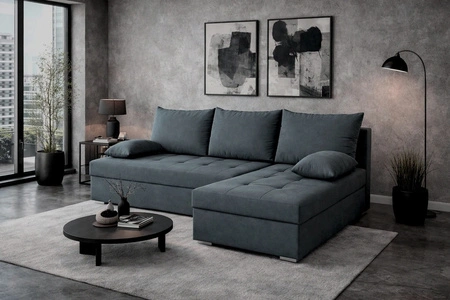 Das Ecksofa mit Schlaffunktion eignet sich dank seiner optimalen Maße und seiner breiten Funktionalität perfekt als Ecksofa für ein Wohnzimmer oder als klappbares Ecksofa für ein Jugendzimmer. Breite der Ecke 200 cm, maximale Höhe 85 cm und Tiefe 143 cm. Die Liegefläche der Eckeinheit beträgt 122x199 cm. Die Sitzhöhe des Möbels beträgt 38 cm und die maximale Höhe der Rückenlehne beträgt 45 cm. Polyurethan-Schaumstoff T28 ist das Material, aus dem der Sitz der Ecke hergestellt ist. Rückenlehne mit losen polstern garantiert komfortable Entspannung nach einem langen Tag, die Sie, Ihre Lieben und auch Gäste, die auf diesem einzigartigen Ecksofa sitzen, zu schätzen wissen werden.