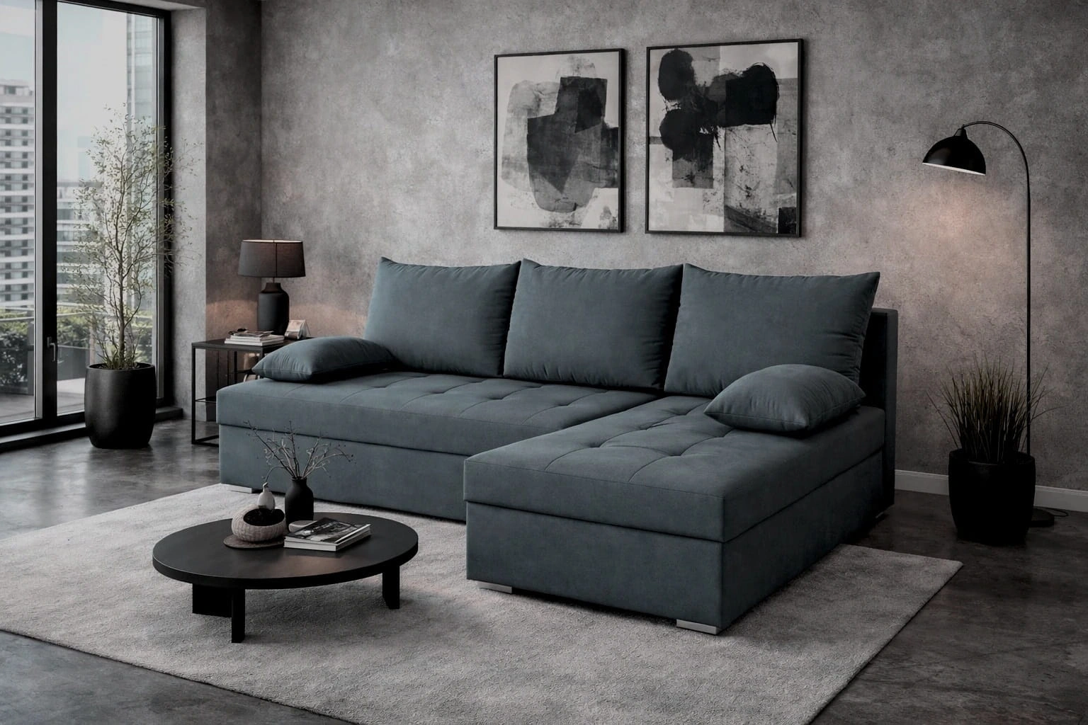 Fasti-Ecke in Dunkelgrau ist die ideale Lösung für ein Wohnzimmer, das sich in jede Einrichtung einfügt.
