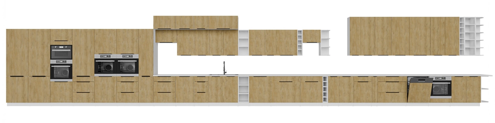 Der Korpus und die Fronten der Küchenschränke sind aus hochwertiger 16 mm dicker laminierter Platte. Der Vorteil dieser Art von Material ist hohe Widerstandsfähigkeit gegen äußere Einflüsse wie Dampf, Hitze, Feuchtigkeit, verschüttete Flüssigkeiten. Auch das verwendete Material ist resistent auf zufällige Beschädigung. Eine stilvolle Ergänzung zu den Küchenschrankfronten ist die schwarz, metallkantengriff, der neben seiner Hauptfunktion auch das moderne Design des Schrankes unterstreicht.