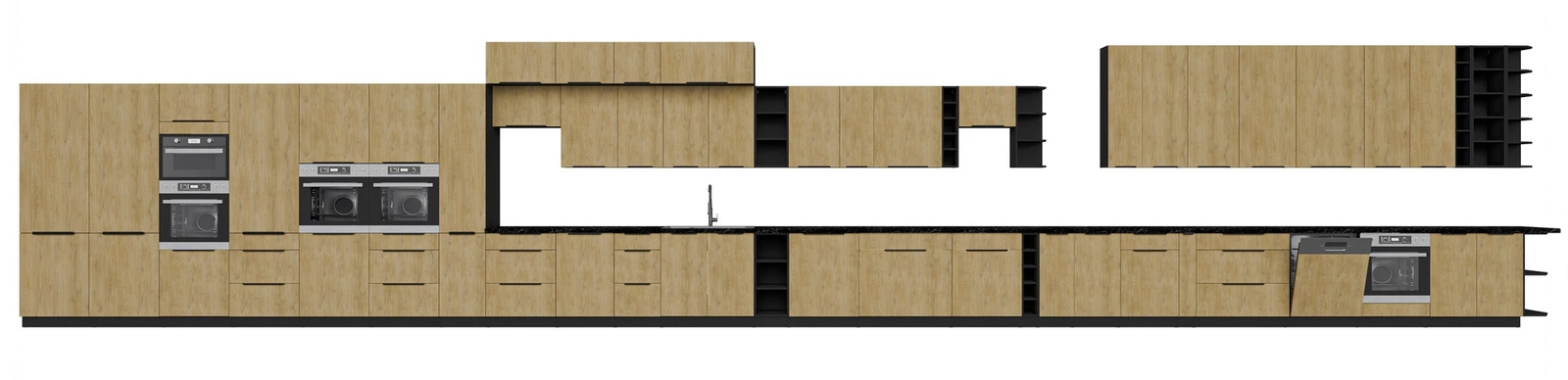 Der Korpus und die Fronten der Küchenschränke sind aus hochwertiger 16 mm dicker laminierter Platte. Der Vorteil dieser Art von Material ist hohe Widerstandsfähigkeit gegen äußere Einflüsse wie Dampf, Hitze, Feuchtigkeit, verschüttete Flüssigkeiten. Auch das verwendete Material ist resistent auf zufällige Beschädigung. Eine stilvolle Ergänzung zu den Küchenschrankfronten ist die schwarz, metallkantengriff, der neben seiner Hauptfunktion auch das moderne Design des Schrankes unterstreicht.