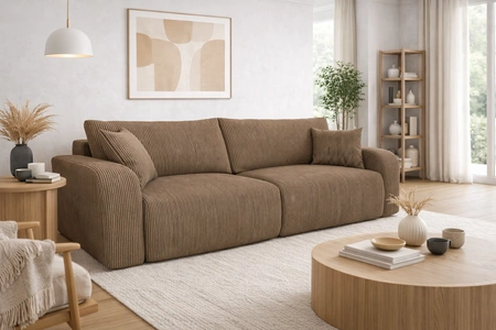 Dreidimensional cordstoff mit ausdrucksstarker und dicker Rippung verleiht einen besonderen Charakter und einzigartige Schönheit. Der Stoff ist sehr weich, aber dennoch robust und langlebig. Der Poso-Polsterungsstoff ist widerstandsfähig gegen Abrieb, und leicht sauber zu halten. So bleibt das Sofa lange Zeit ästhetisch und elegant. Die Schlafsofas von Fiesta werden aus hochwertigen Materialien hergestellt, die sich durch ihre Widerstandsfähigkeit gegen äußere Einflüsse wie Polsterung und verschiedene Arten von Stößen auszeichnen.