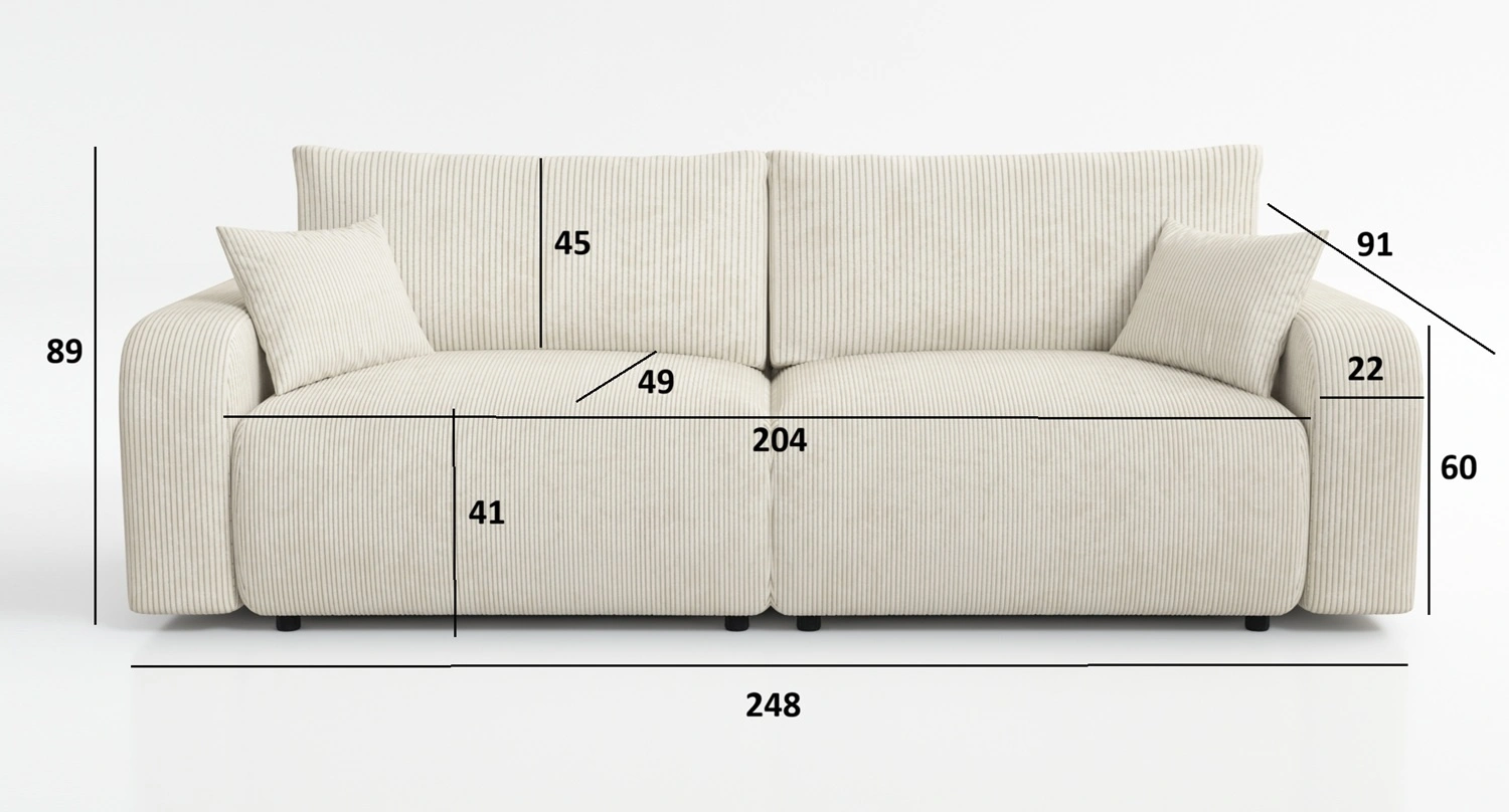 Das Aufklappen der kompletten Liegefläche ist sehr einfach und erfordert wenig Kraftaufwand. Der Sitz ist auf Holzkufen ausziehbar. Die Liegefläche des Sofas beträgt 138x204 cm. Die Möbel sind mit niedrigen Kunststoffbeinen ausgestattet. Dieses funktionelle Sofa passt in jede Art von Raum. Garantiert eine komfortable und störungsfreie Nutzung und eine lange Lebensdauer des gesamten Möbelstücks. Ideal als Sofa für das Wohnzimmer, als Sofa mit Schlaffunktion und für jede Einrichtung in Ihrem Lieblingsstil.