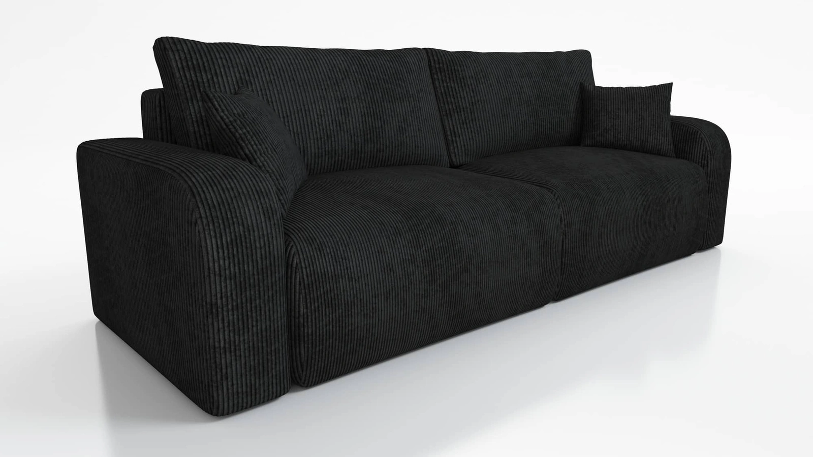 Sofa Fiesta schwarz funktionelles Wohnzimmersofa mit Bettzeugablage elegantes Design Kordelstoff