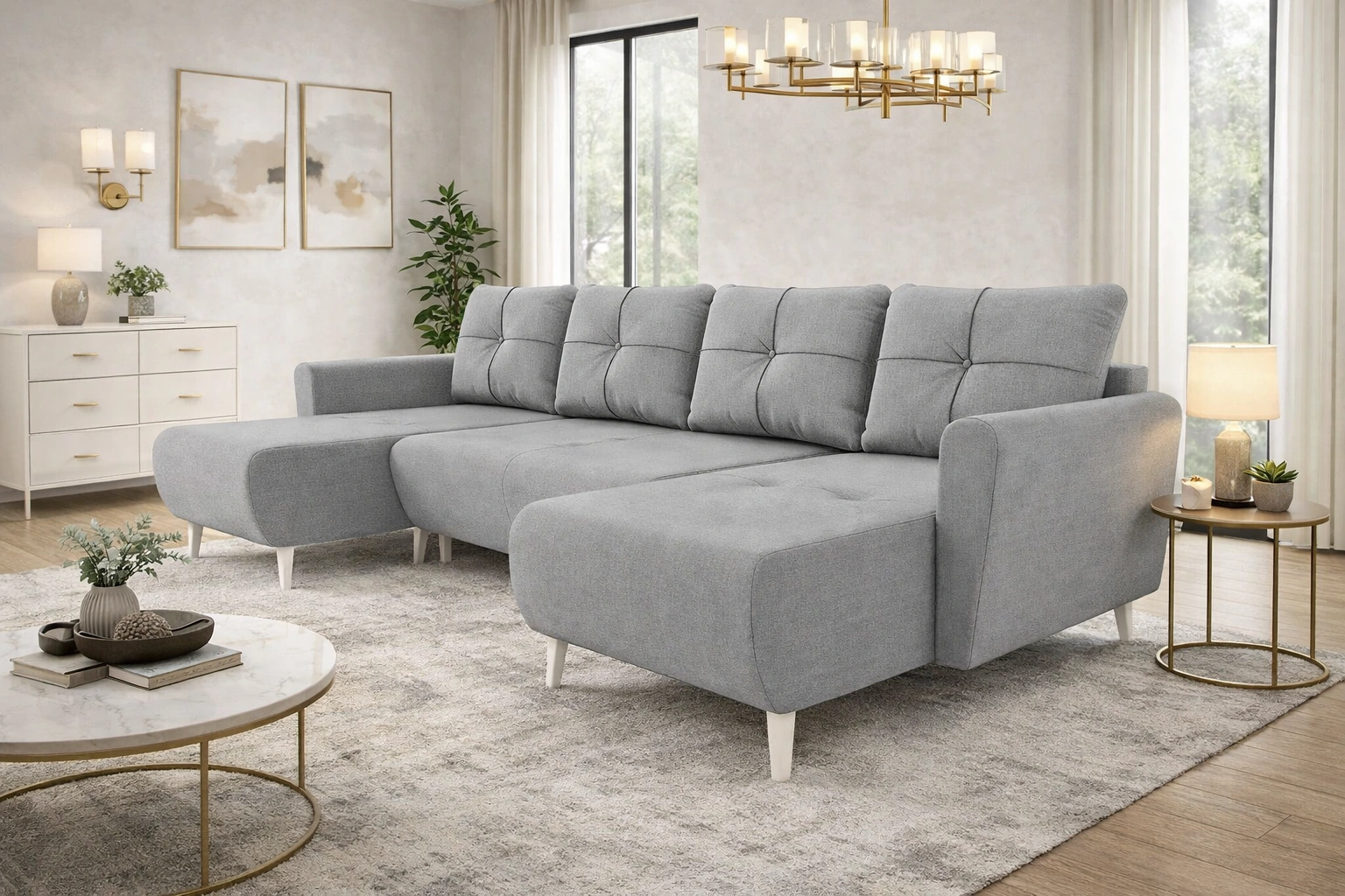 Ecksofa mit Schlaffunktion Felicie U hellgrau stilvolles und elegantes Ecksofa das sich in skandinavische Einrichtungen einfügt