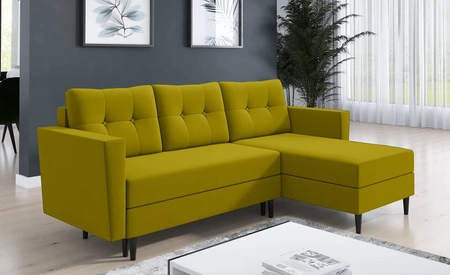 Ecksofa mit Schlaffunktion Telše ist gekennzeichnet durch eine Kombination aus traditionellem und skandinavischem Stil. Die Struktur der Ecke wurde vollständig mit einem Stoff des Typs velours Dreifaltigkeit 12, garantiert höchsten Komfort und Funktionalität bei der täglichen Entspannung im Wohnzimmer, im Gästezimmer oder in jedem anderen Raum, in dem Sie dieses äußerst moderne Ecksofa aufstellen möchten. Der stilvolle Korpus ist mit komfortablen seiten mit einer interessanten Form i hohe, schlanke Beine visuelle Leichtigkeit für die gesamte Struktur. Das Ecksofa Telsze ist ein ein universelles Möbelstück, d.h. die Chaiselongue kann auf die rechte oder linke Seite eingestellt werden. Es ist ideal für diejenigen, die ihre Innenräume gerne gestalten oder eine untypische Raumaufteilung haben.