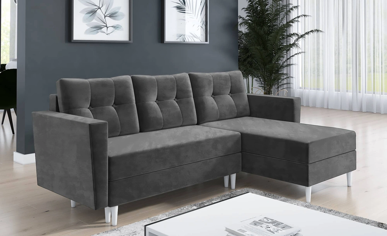 Telsze-Ecke in Grau ist ein stilvolles Stück, das sich gut in jedes Arrangement in Ihrem Zuhause einfügt.