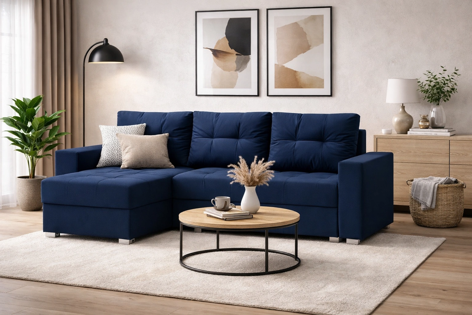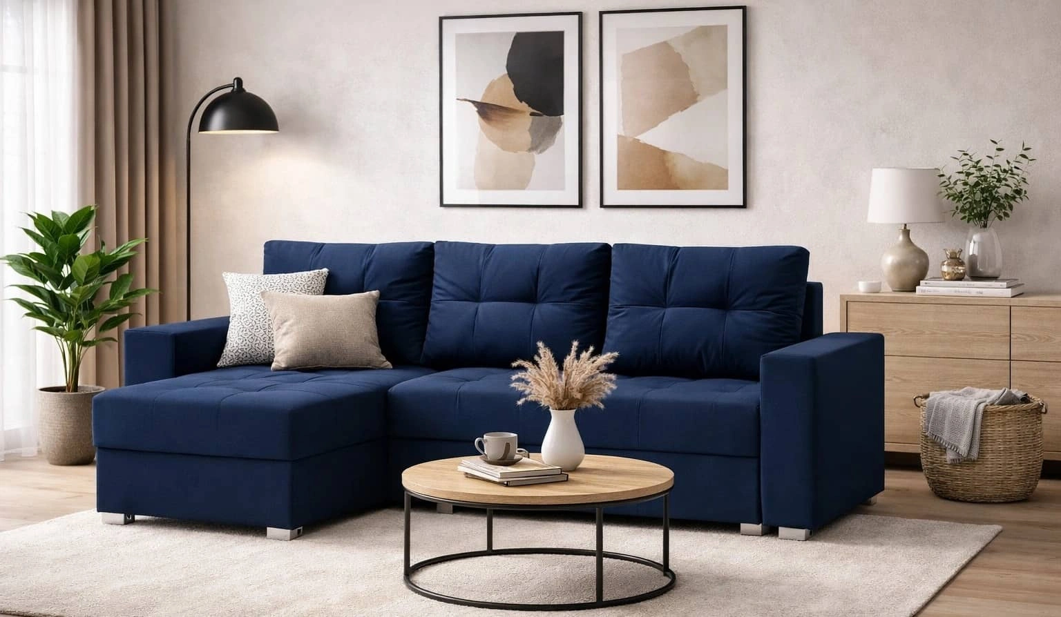Ecksofa Pablos in Marineblau ist eine ideale Lösung für das Wohnzimmer, die zu jeder Einrichtung passt.