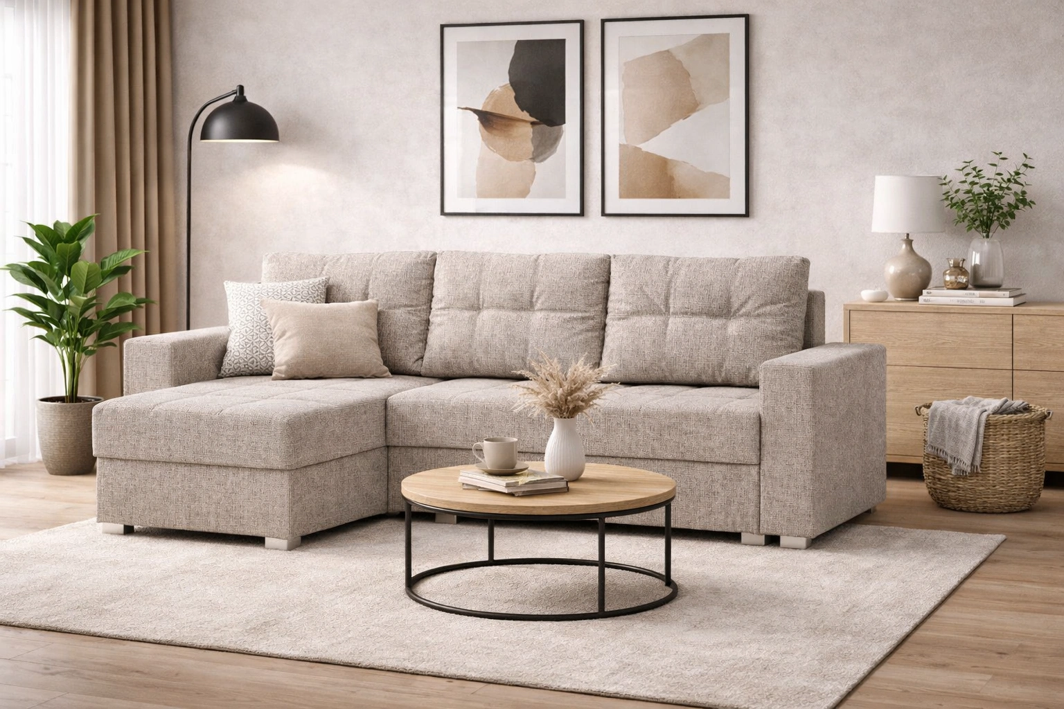 Ecksofa Pablos in Beige ist eine ideale Lösung für das Wohnzimmer und passt zu jeder Einrichtung.