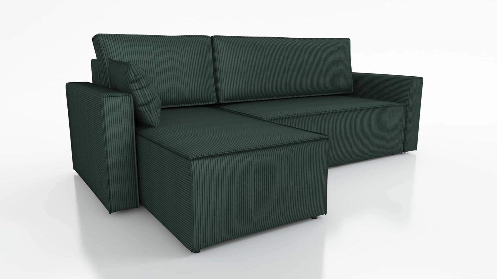 Dreidimensional kordstoff mit seiner ausgeprägten und dicken Rippung verleiht ihm einen besonderen Charakter und einzigartige Schönheit. Der Stoff ist sehr weich und dennoch stark und robust. Der Poso-Polsterungsstoff ist widerstandsfähig gegen Abrieb, und leicht sauber zu halten. So wird die Rebenes-Liegeecke lange Zeit ästhetisch und elegant aussehen. Das Ecksofa mit täglicher Schlaffunktion ist aus hochwertigen Materialien gefertigt, die gegen äußere Einflüsse wie Möbelbezüge und verschiedene Arten von Stößen resistent sind.