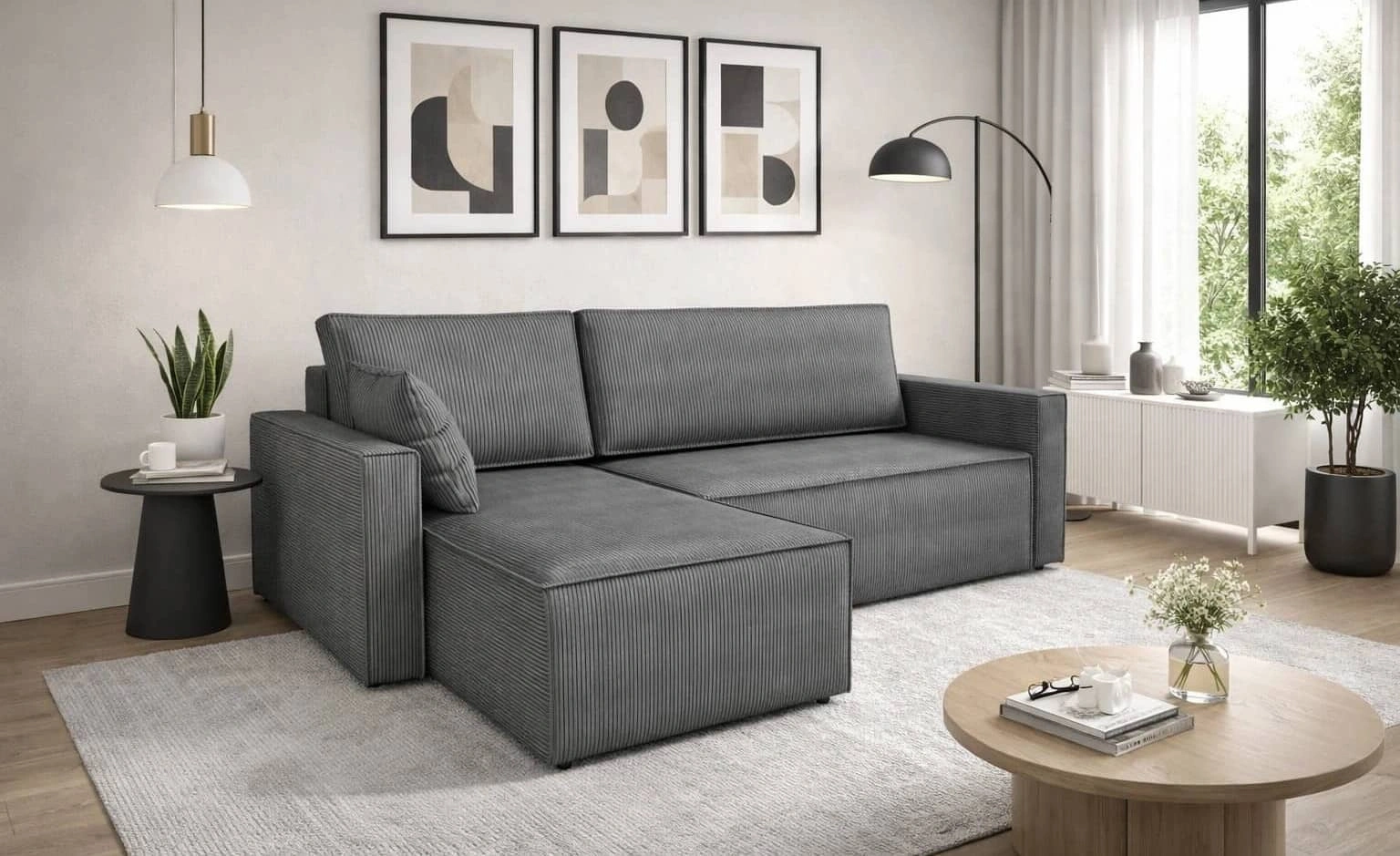 Dreidimensional kordstoff mit seiner ausgeprägten und dicken Rippung verleiht ihm einen besonderen Charakter und einzigartige Schönheit. Der Stoff ist sehr weich und dennoch stark und robust. Der Poso-Polsterungsstoff ist widerstandsfähig gegen Abrieb, und leicht sauber zu halten. So wird die Rebenes-Liegeecke lange Zeit ästhetisch und elegant aussehen. Das Ecksofa mit täglicher Schlaffunktion ist aus hochwertigen Materialien gefertigt, die gegen äußere Einflüsse wie Möbelbezüge und verschiedene Arten von Stößen resistent sind.