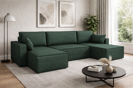 Dreidimensional kordstoff mit seiner ausgeprägten und dicken Rippung verleiht ihm einen besonderen Charakter und einzigartige Schönheit. Der Stoff ist sehr weich und dennoch stark und robust. Der Poso-Polsterungsstoff ist widerstandsfähig gegen Abrieb, und leicht sauber zu halten. So wird die Rebenes U-Liegeecke lange Zeit ästhetisch und elegant aussehen. Das Ecksofa mit täglicher Schlaffunktion ist aus hochwertigen Materialien gefertigt, die gegen äußere Einflüsse wie Möbelbezüge und verschiedene Arten von Stößen resistent sind.
