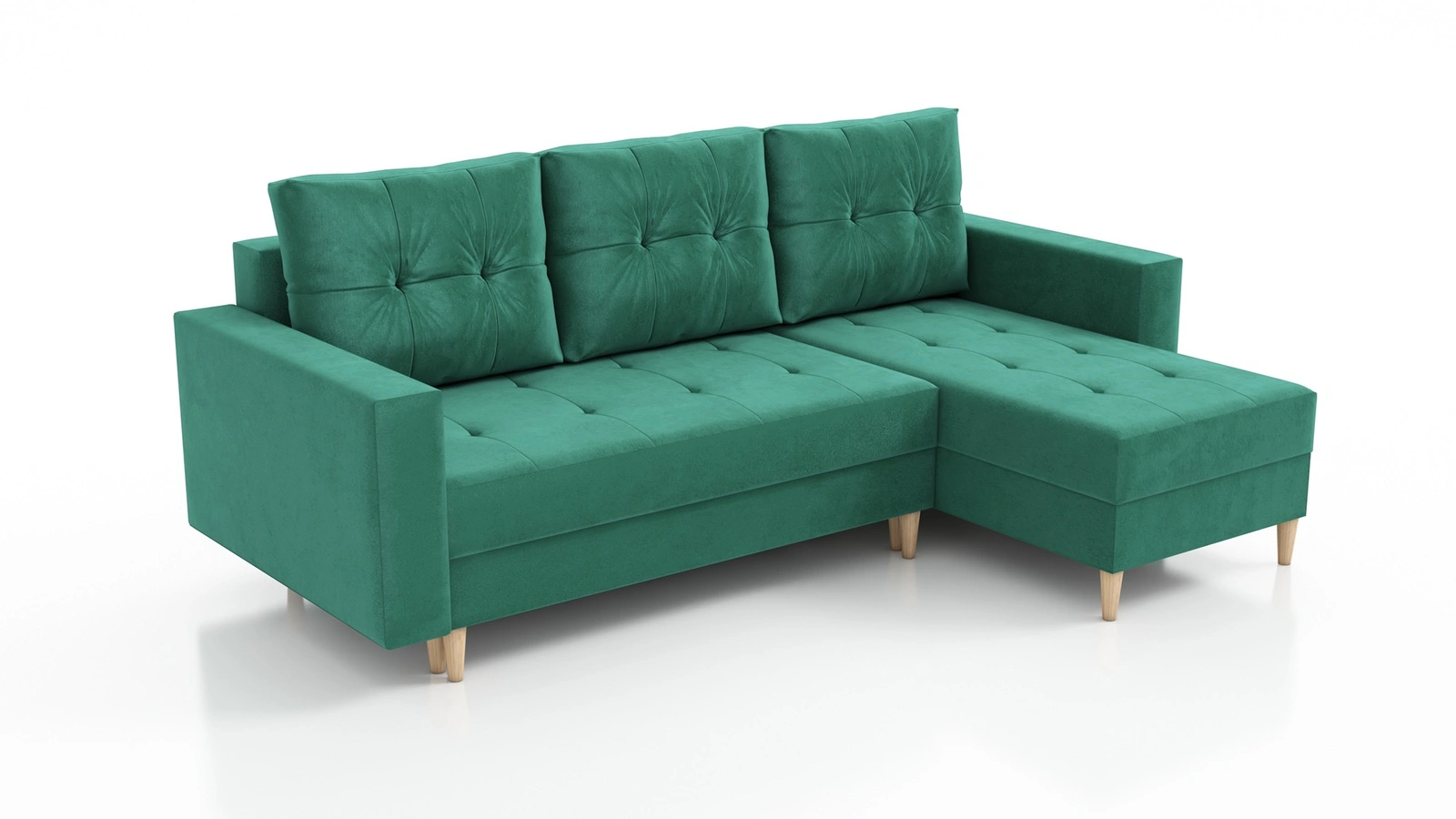 Ecksofa mit Schlaffunktion Vaso flaschen green universal bequemes Ecksofa für ein Wohnzimmer im skandinavischen Stil großes Bettzeugfach