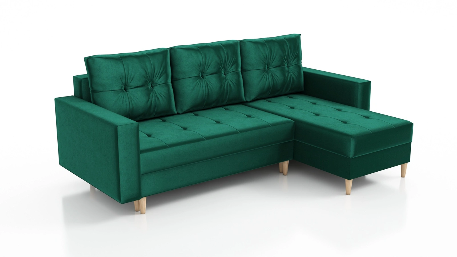 Ecksofa mit Schlaffunktion Vaso flaschen green universal bequemes Ecksofa für ein Wohnzimmer im skandinavischen Stil großes Bettzeugfach